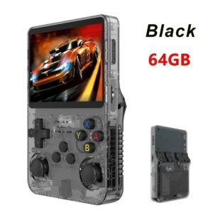 R36S Orange Portable Video Game Console 64G/128GB 3.5 Inch IPS Screen Open Source Linux Pocket Player with 15000 Preloaded Games – Black 64G