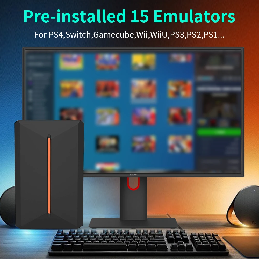 This 500GB portable gaming HDD pre-installed 15 emulators, for PS4, Switch, gamecube, wii, wiiu, PS3, PS2, PS1 etc